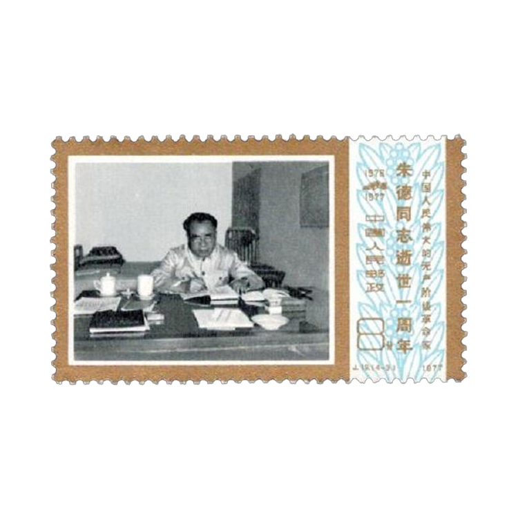 1977年7月6日,为了表达全国各族人民对朱德的怀念之情,邮电部发行了《中国人民伟大的无产阶级革命家朱德同志逝世一周年》纪念邮票,全套4枚。
