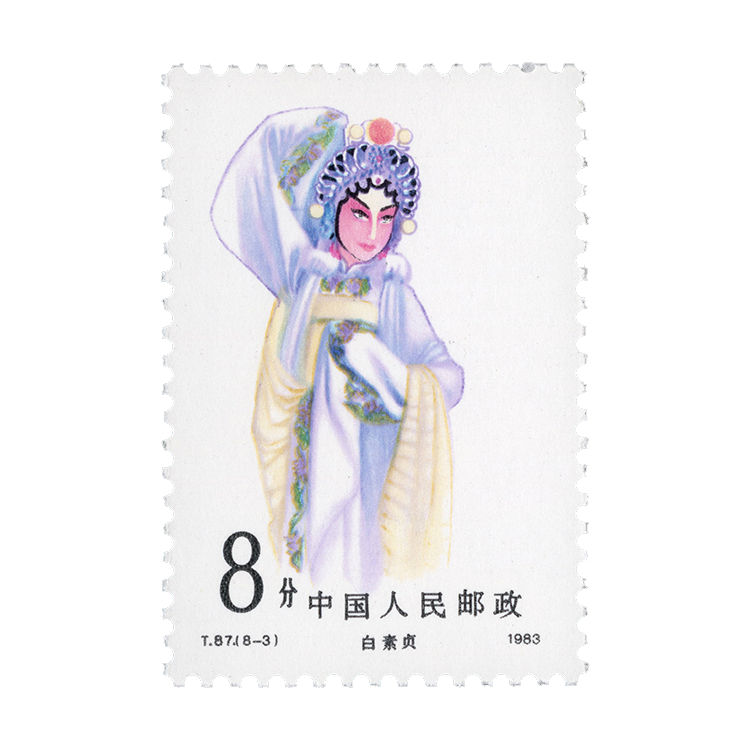 这套邮票通过京剧中的旦角这一侧面反映了京剧在造型、角色分配等方面的特色。设计者李为运用水粉画技法,选取剧情中有代表意义的场面作为其设计的依据,可谓形神兼备,寓复杂的剧情于方寸之中。