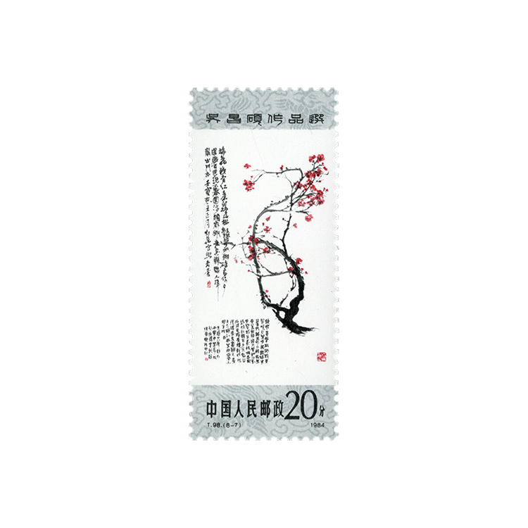 本套邮票是为了纪念我国著名书画家吴昌硕,选取了吴昌硕的书画作品共八件作为邮票内容。