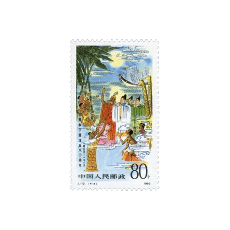 1985年7月11日,为纪念郑和下西洋580周年,邮电部发行了《郑和下西洋五百八十周年》纪念邮票,全套4枚。