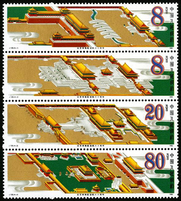 1985年10月10日,为纪念故宫博物院建院六十周年发行该套邮票,全套4枚。