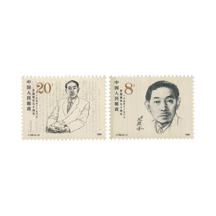 1986年7月4日,为纪念茅盾诞生九十周年发行该套邮票,全套共2枚。
