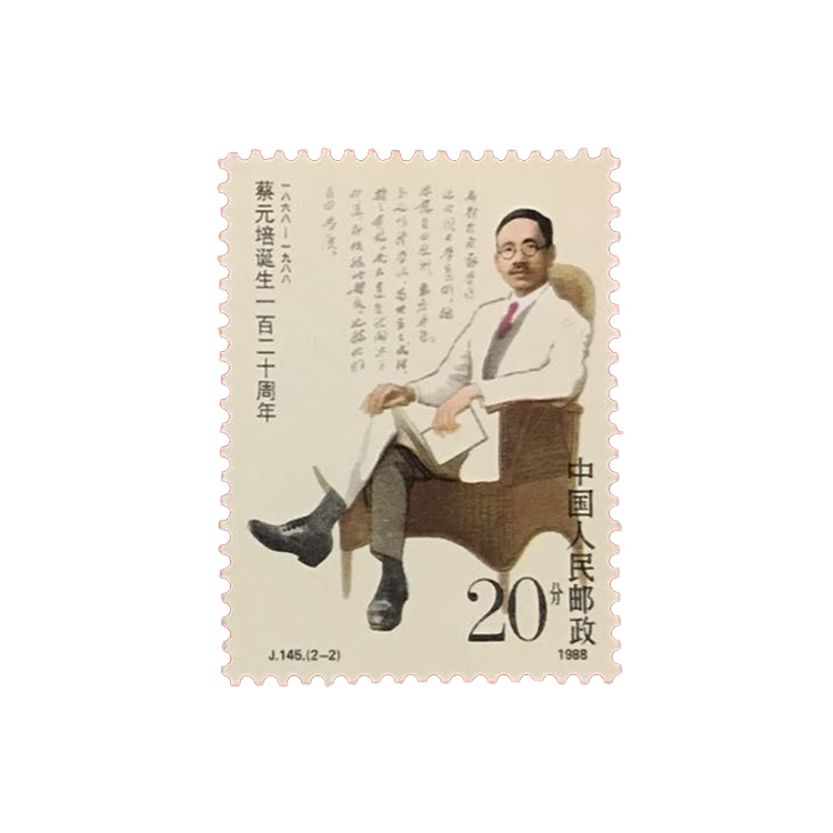 邮电部为表达对著名教育家蔡元培的怀念之情,1988年1月11日发行了《蔡元培诞生一百二十周年》纪念邮票,1套2枚。
