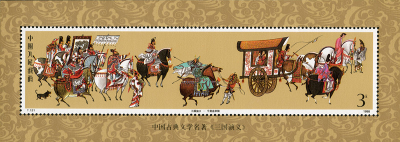 在四大名著之中,很多人独独对《三国演义》情有独钟。罗贯中先生以其独特的方式,在人们的眼前展现了一幅历史演变的过程,十分详细,令人看后回味无穷。为了让如此完美的着作更好的流传后世,中国发行了T131M 中国古典文学名着《三国演义》(第一组)(小型张)邮票。这枚邮票发行于1988年11月25日,图中描绘的是三国演义中千里走单骑的场面,图中,关云长骑马而战,十分英勇,过五关斩六将义薄云天。图中的人物被绘制的十分的精细,流畅的线条,将人物描绘的栩栩如生。