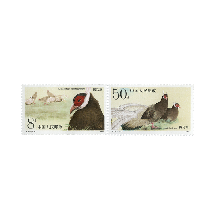 邮票的设计者以细腻的工笔重彩表现手法画出了褐马鸡惹人喜爱的神态和俏丽丰满的翎羽。