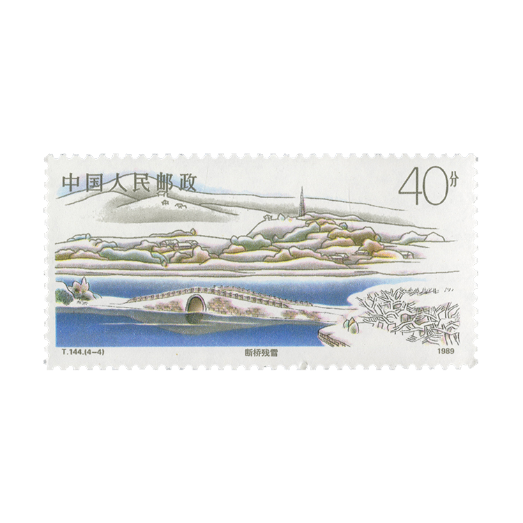 本套邮票共4枚,选取苏堤春晓、曲院风荷、三潭印月、断桥残雪四处景观为画面,再现了西湖春夏秋冬4季的不同风光。