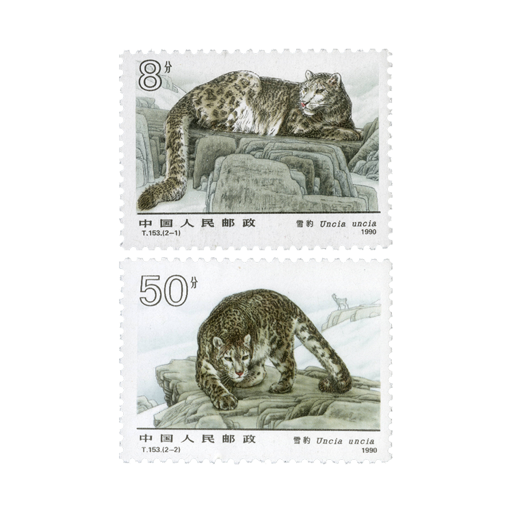 国家邮政部为了纪念珍稀动物雪豹发行的一套特种邮票,发行于1990年7月20日,1套2枚。