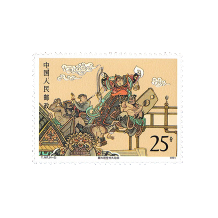 1991年11月19日发行了第三组中国古典文学名著《水浒传》特种邮票,编号T167,全套4枚邮票,1枚小型张。这套《水浒传》第三组邮票,选取书中第39回至50回的五段故事。