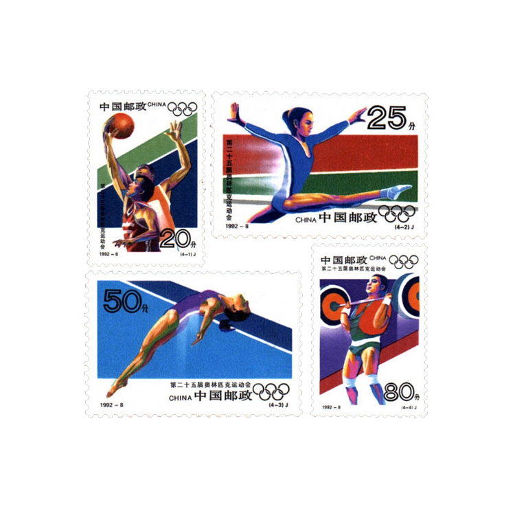 邮电部于1992年07月25日发行《第二十五届奥林匹克运动会》邮票,一套四枚。