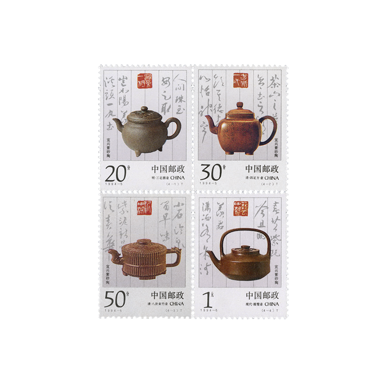 1994年5月5日,为弘扬中国历史悠久的紫砂文化,邮电部发行了《宜兴紫砂陶》特种邮票,全套4枚。