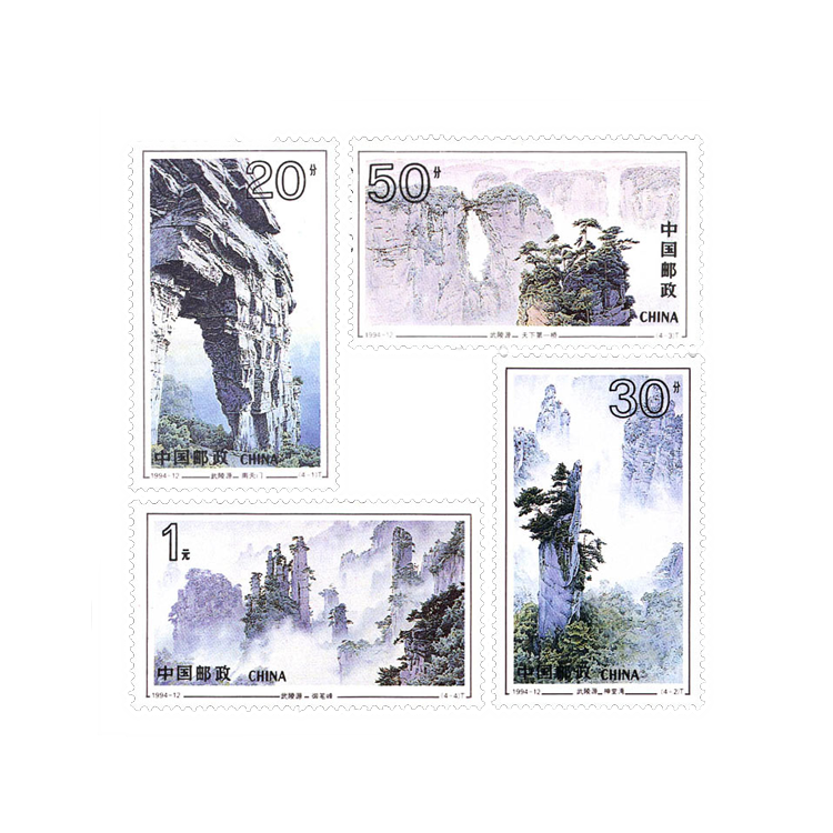 1994年9月25日,为了展现中华山川的壮美风采,邮电部发行了《武陵源》特种邮票,全套4枚,小型张1枚。