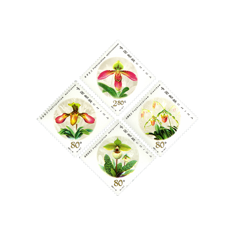 2001年9月28日,为了展示中国丰富的植物资源,国家邮政局发行了《兜兰》特种邮票,全套4枚,小全张1枚。