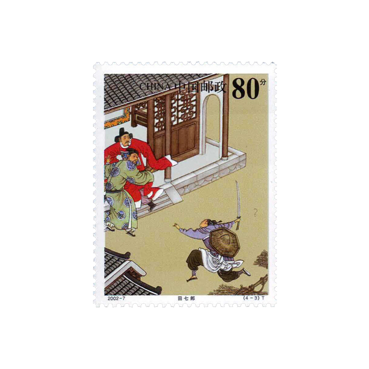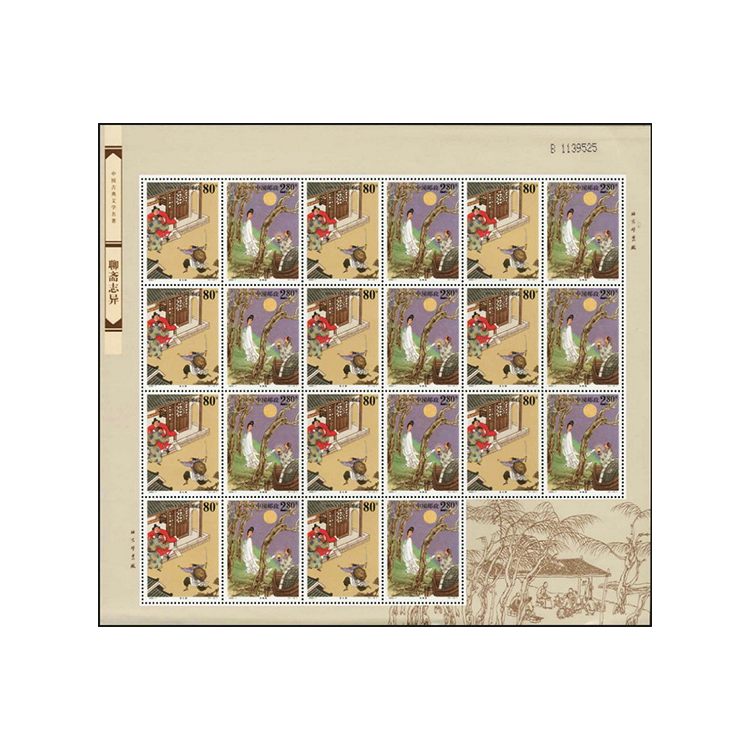 2002年4月21日国家邮政局发行中国古典文学名著——《聊斋志异》(第二组)特种邮票一套四枚,邮票材于《聊斋志异》中的名篇《席方平》、《翩翩》、《田七郎》、《白秋练》,全套邮票面值5元。