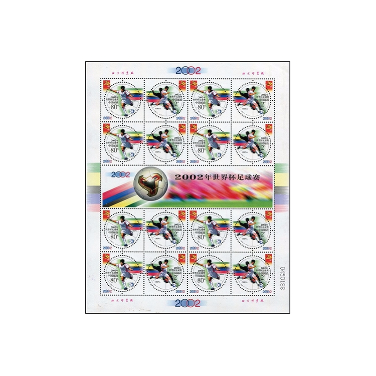 国家邮政局定于2002年5月16日发行《2002年世界杯足球赛》纪念邮票1套2枚。