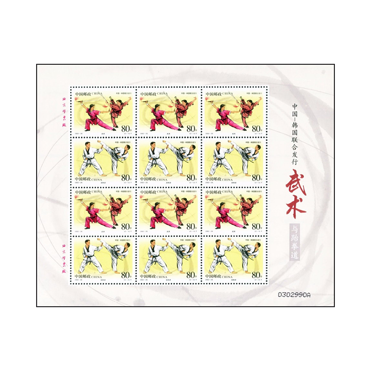 2002年11月20日,为展示两国历史悠久的民间传统体育项目,国家邮政局和大韩民国邮政联合发行了《武术与跆拳道》特种邮票,全套2枚。