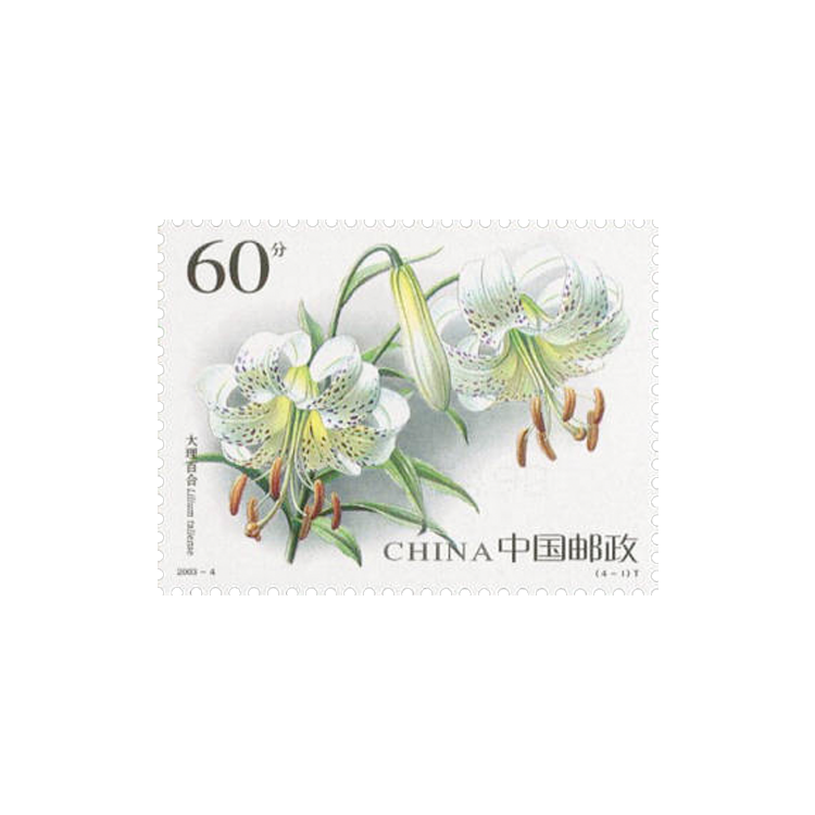 2003年3月5日,为了展示中国丰富的植物资源和庆祝第十届全国人民代表大会召开,国家邮政局发行了《百合花》特种邮票,全套4枚,小型张1枚,同时发行小版张1套4版。