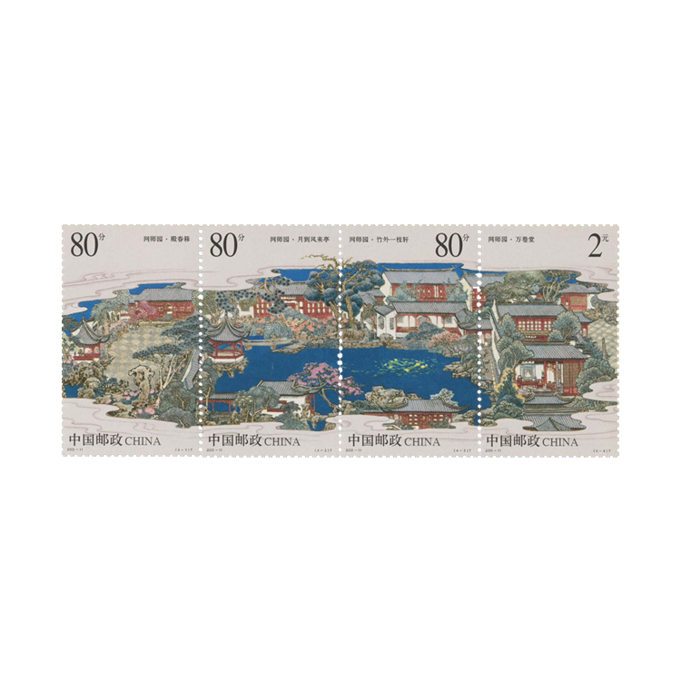 2003年6月29日,为了展示中国园林艺术的风貌和世界文化遗产,国家邮政局发行了《苏州园林-网师园》特种邮票,全套4枚,同时发行小版张1套1版。