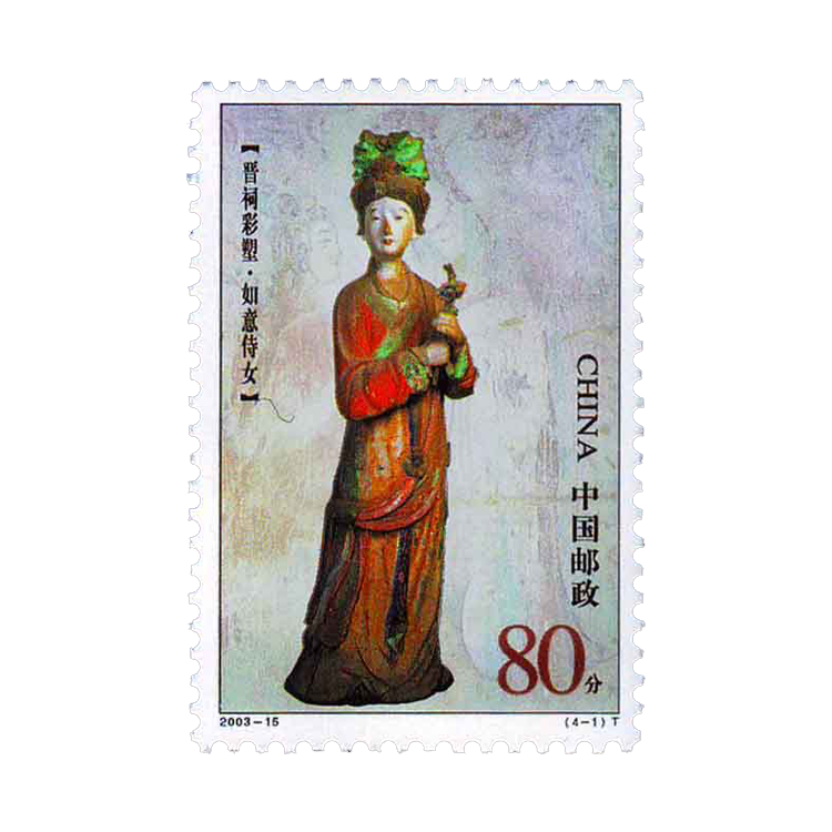 国家邮政局定于2003年8月16日发行《晋祠彩塑》特种邮票1套4枚。