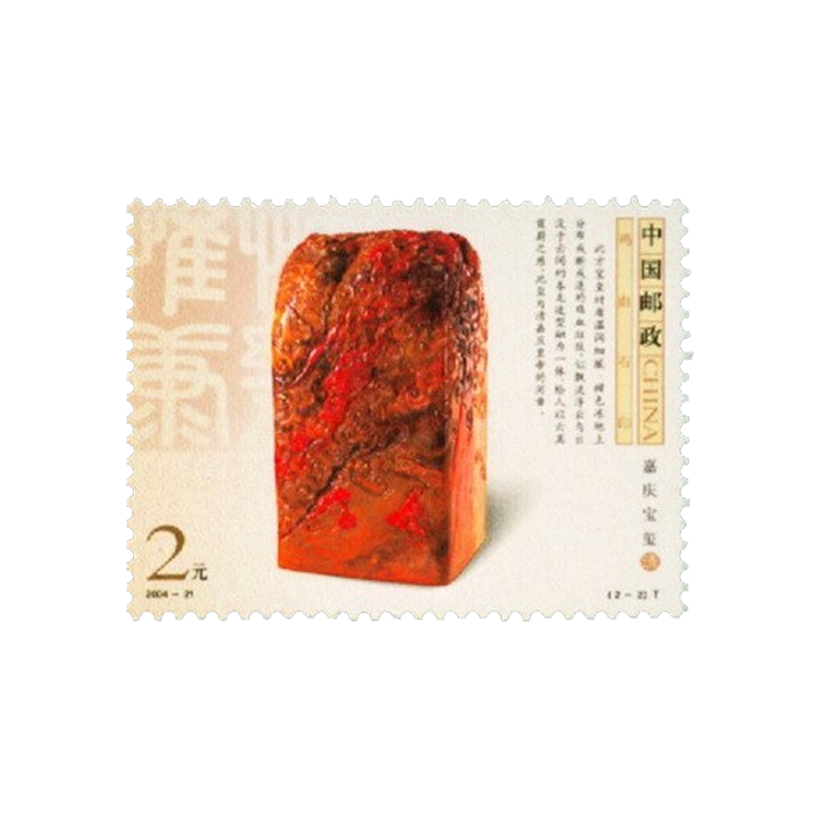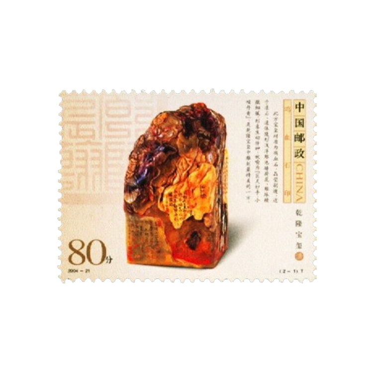 2004年9月17日,为了展示中国印章雕刻艺术成就,国家邮政局发行了《鸡血石印》特种邮票,全套2枚。