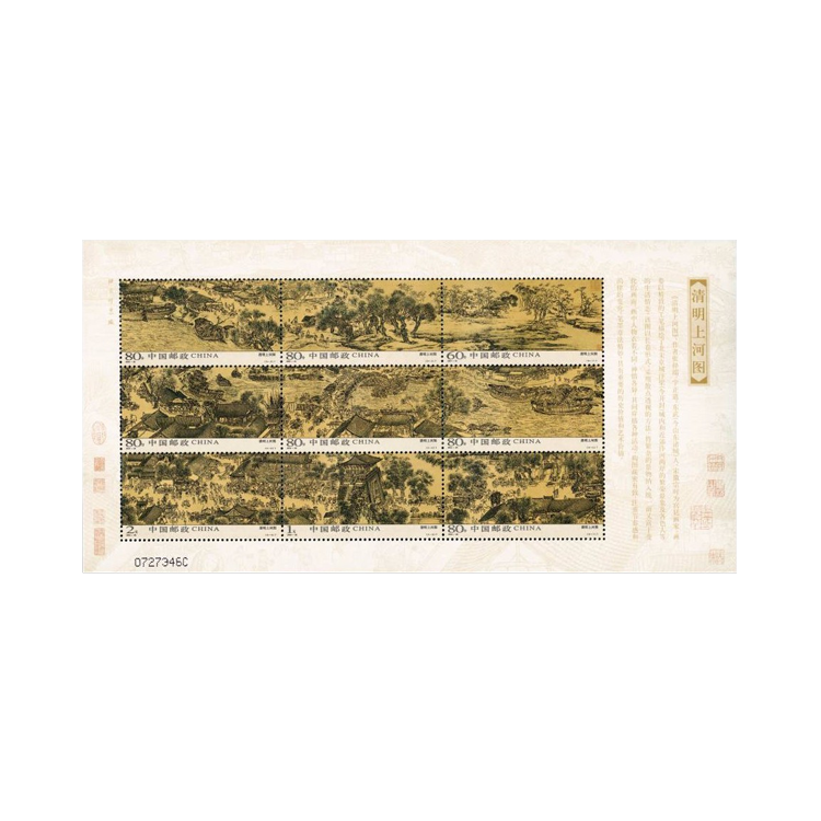 2004年10月18日,为了反映悠久灿烂的中国绘画艺术,国家邮政局发行了《清明上河图》特种邮票,全套版张型9枚。