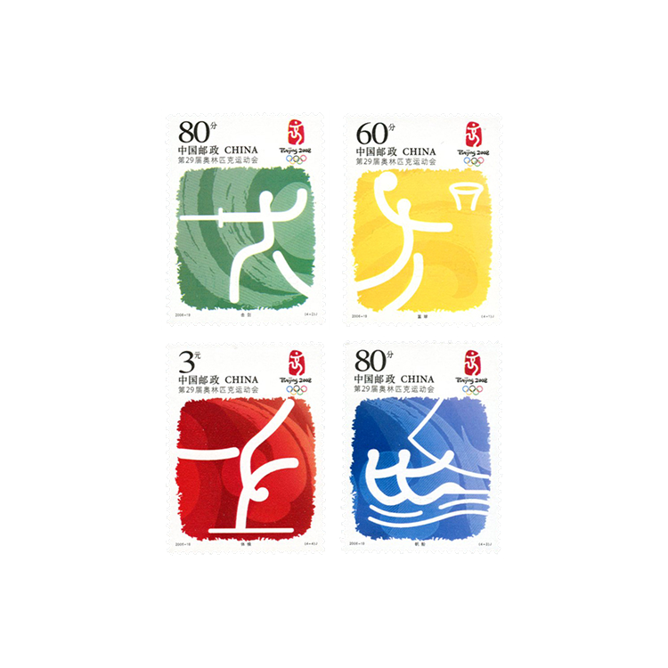 国家邮政局定于2006年8月8日发行《第29届奥林匹克运动会——运动项目(一)》纪念邮票1套4枚。