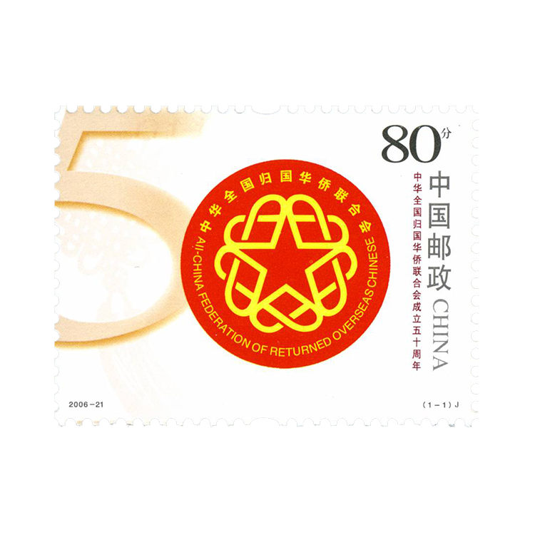 国家邮政局定于2006年9月25日发行《中华全国归国华侨联合会成立五十周年》纪念邮票1套1枚。