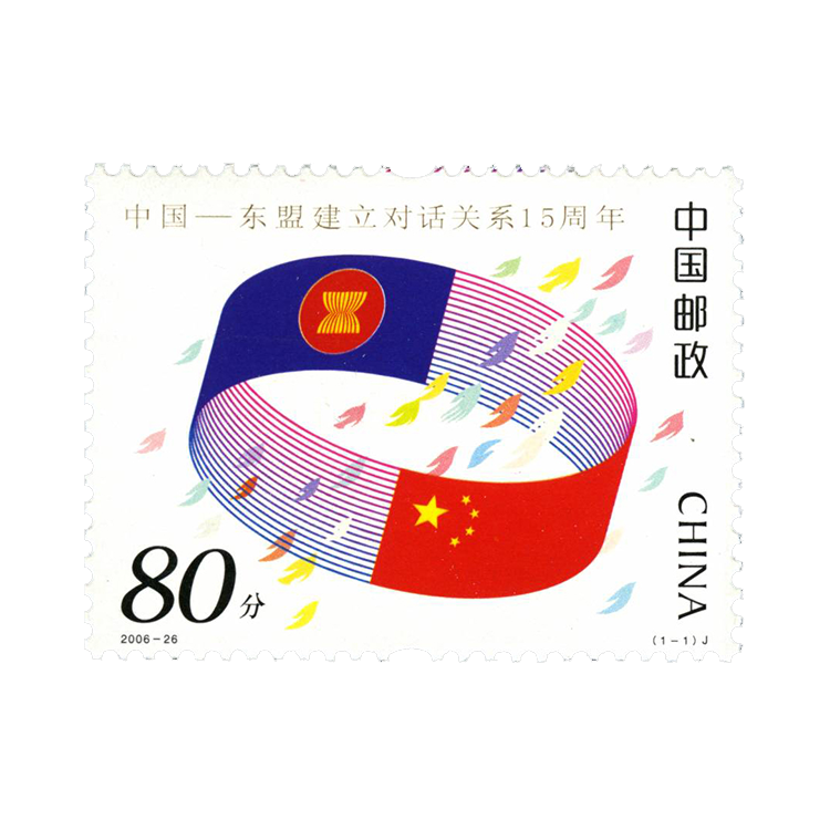 国家邮政局定于2006年10月30日发行《中国——东盟建立对话关系15周年》纪念邮票1套1枚。