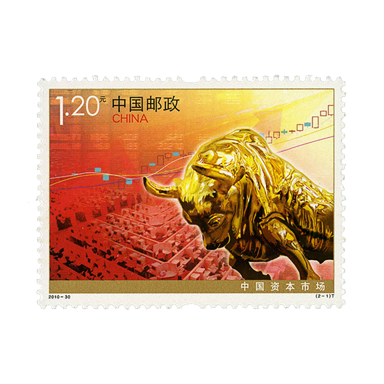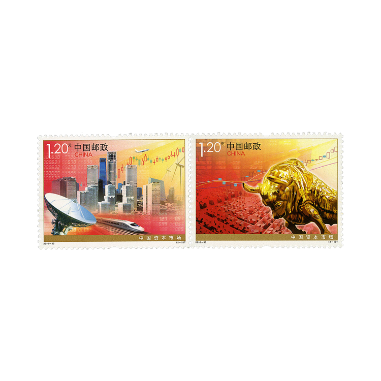 中国邮政2010年12月12日发行《中国资本市场》特种邮票,1套2枚。