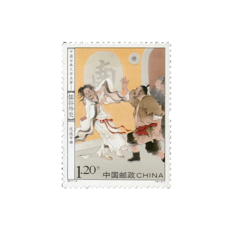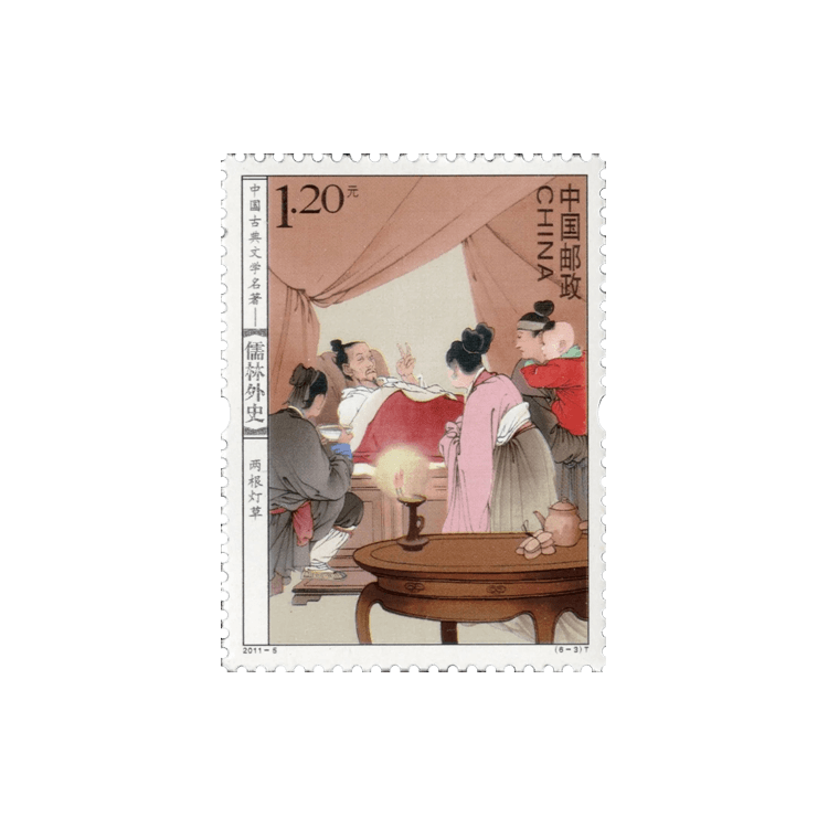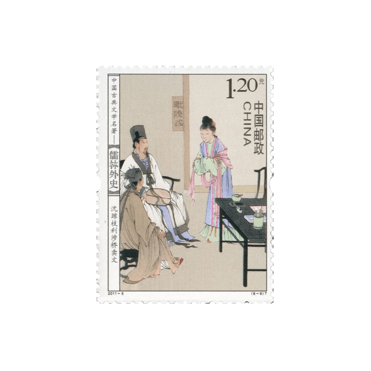 中国邮政定于2011年3月21日发行《中国古典文学名著——〈儒林外史〉》特种邮票1套6枚。