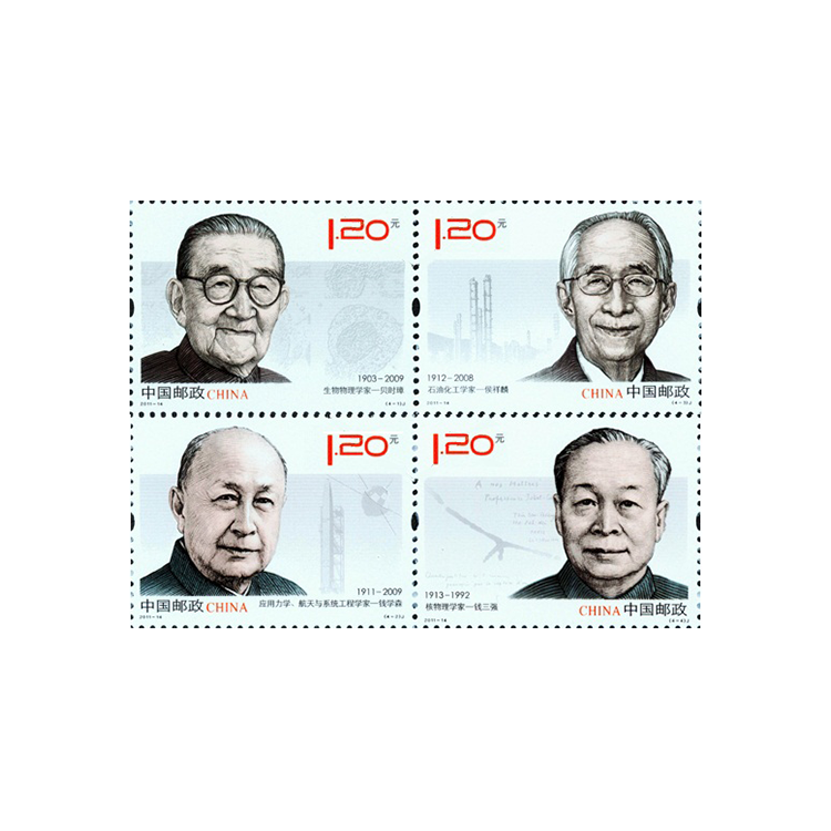 中国邮政定于2011年5月25日发行《中国现代科学家(五)》纪念邮票1套4枚。