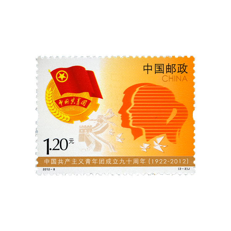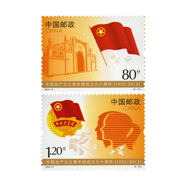 中国邮政定于2012年5月4日发行《中国共产主义青年团成立九十周年》纪念邮票1套2枚。