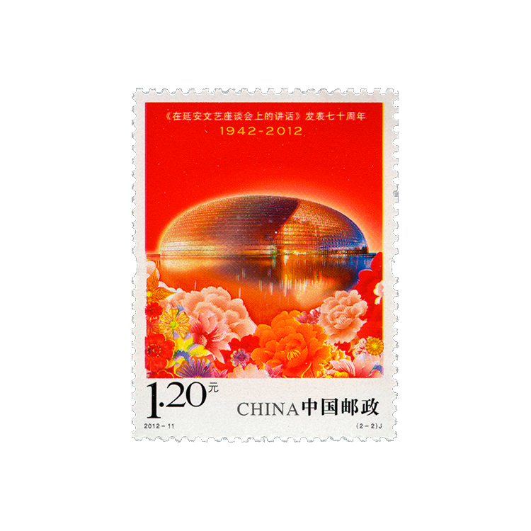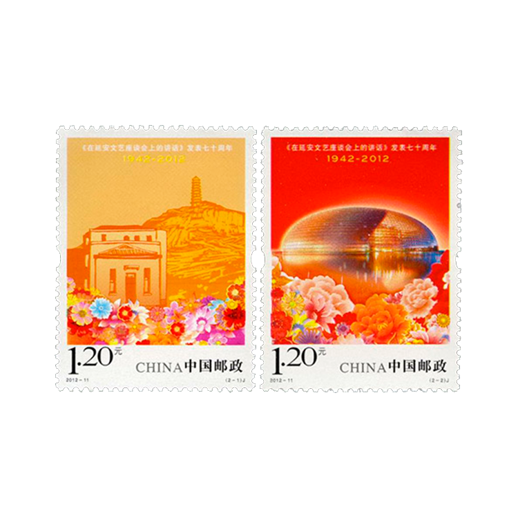 • 中国邮政定于2012年5月23日发行《〈在延安文艺座谈会上的讲话〉发表七十周年》纪念邮票1套2枚。
