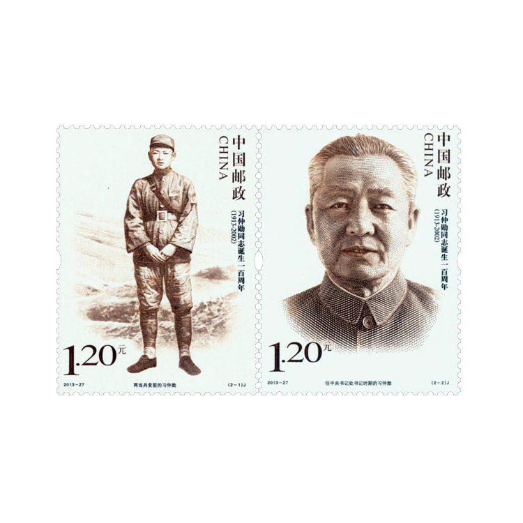 中国邮政定于2013年10月15日发行《习仲勋同志诞生一百周年》纪念邮票1套2枚。