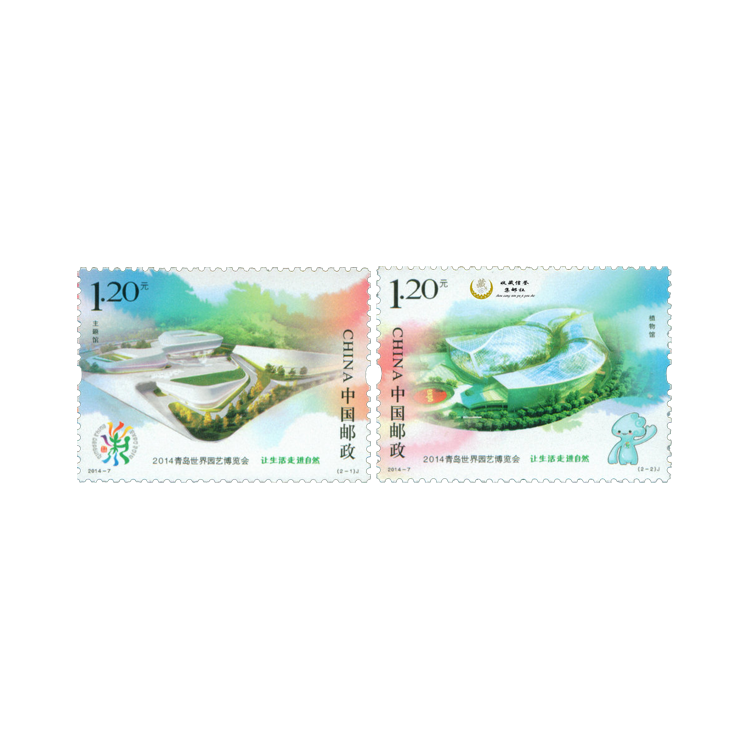 中国邮政定于2014年4月25日发行《2014青岛世界园艺博览会》纪念邮票1套2枚。