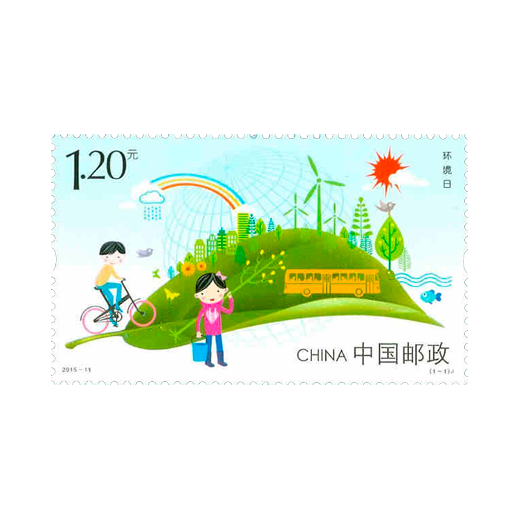 中国邮政定于2015年6月5日发行《环境日》纪念邮票1套1枚,邮票面值为1.20元。