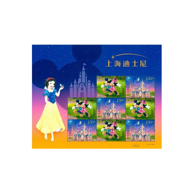 中国邮政2016年6月16日发行《上海迪士尼》特种邮票,1套2枚,小全张1枚。