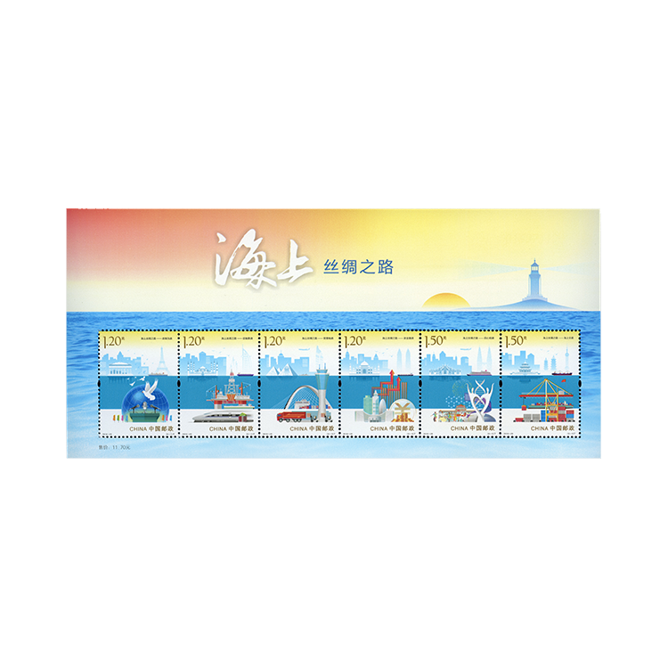 中国邮政2016年9月10日发行《海上丝绸之路》特种邮票1套6枚,小全张1枚。