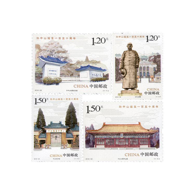 中国邮政2016年11月12日发行《孙中山诞生一百五十周年》纪念邮票1套4枚。