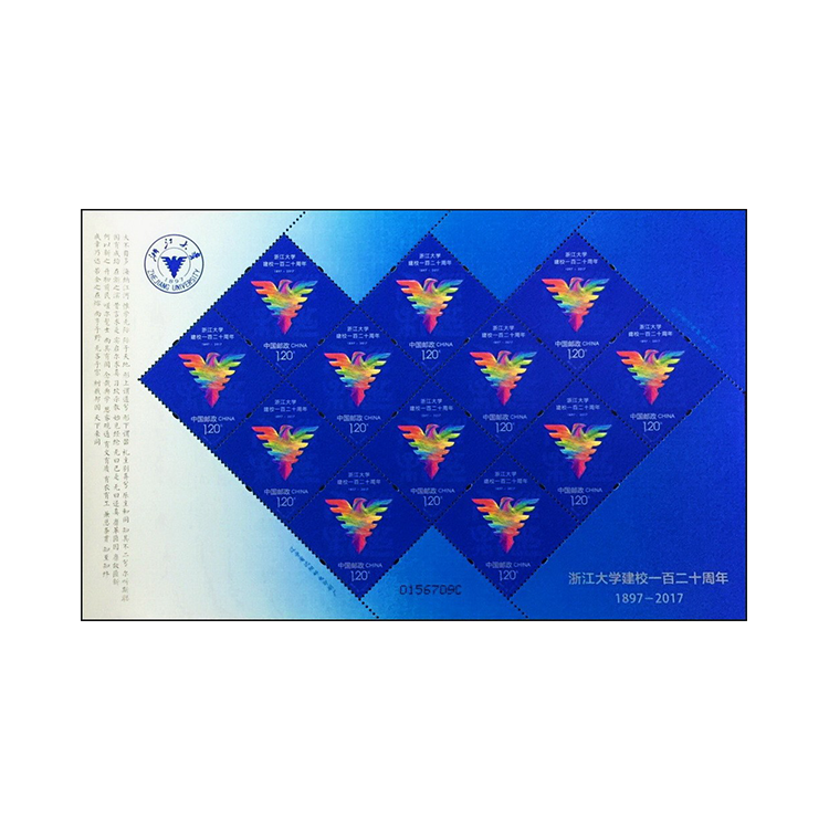 中国邮政定于2017年5月21日发行《浙江大学建校一百二十周年》纪念邮票1套1枚。