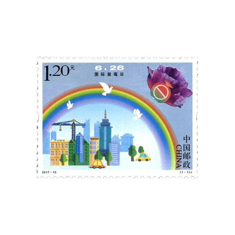 2017年6月26日中国邮政发行《国际禁毒日》纪念邮票,一套1枚。