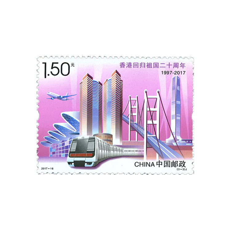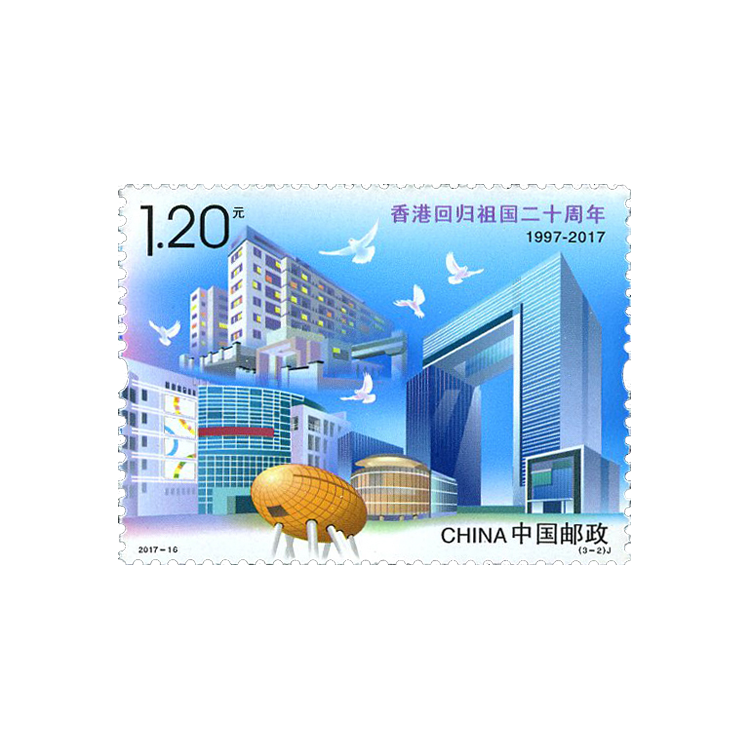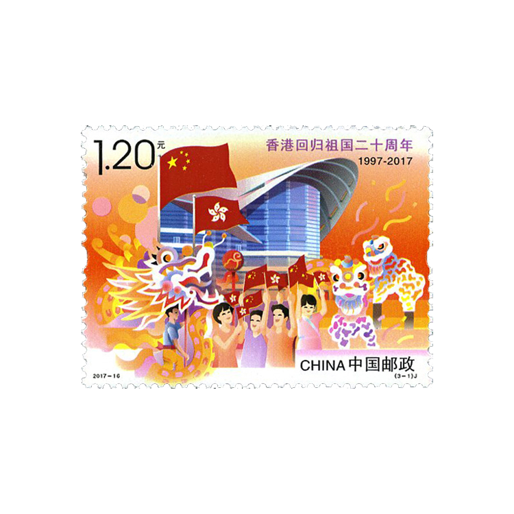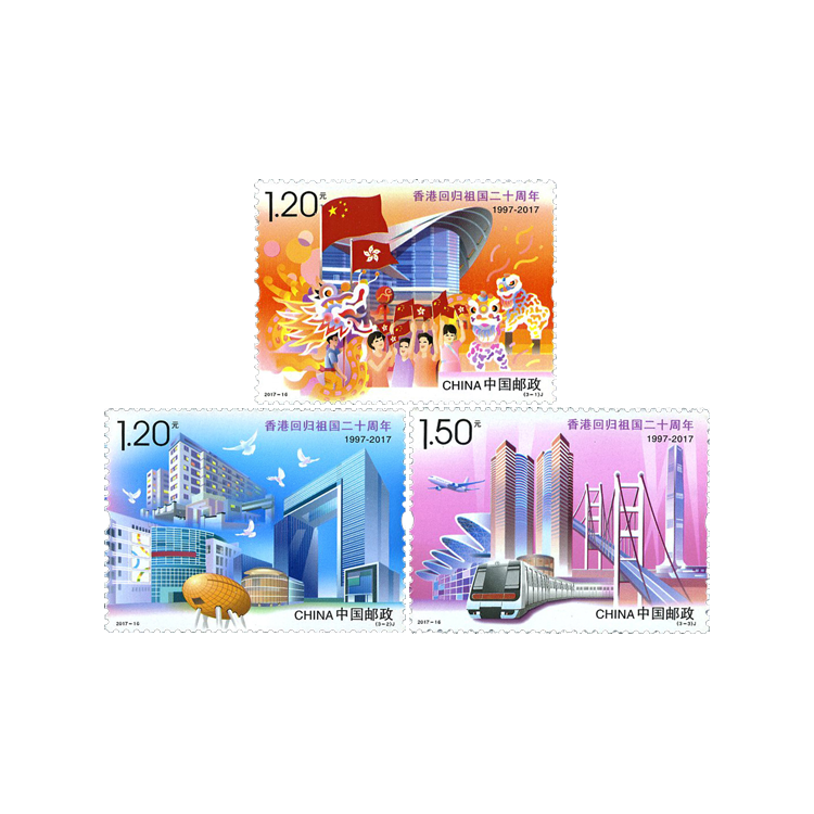 • 中国邮政定于2017年7月1日发行《香港回归祖国二十周年》纪念邮票一套3枚。