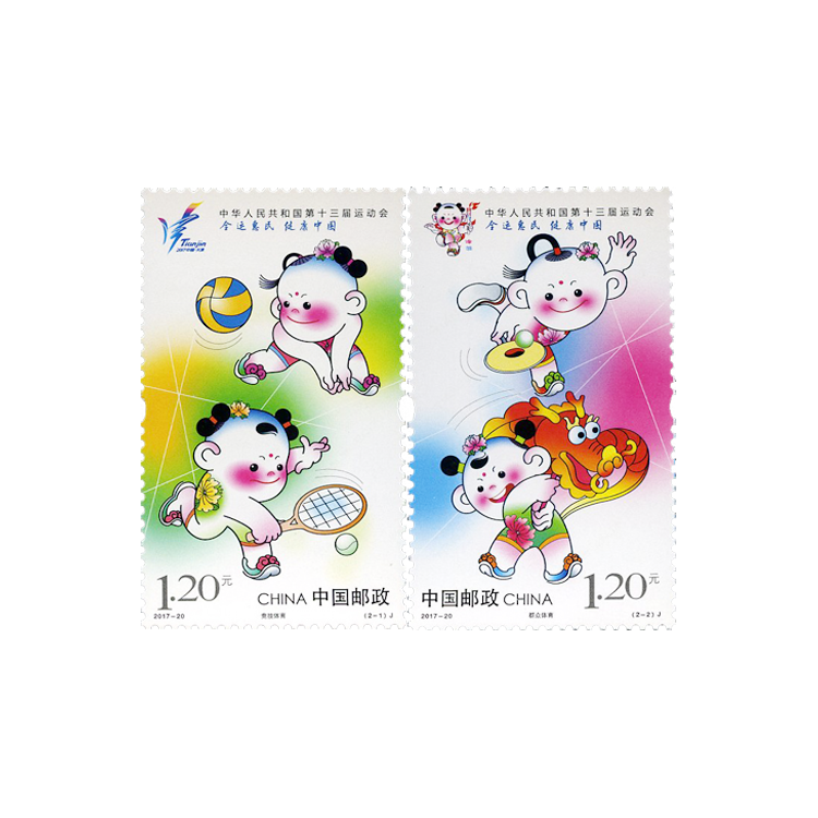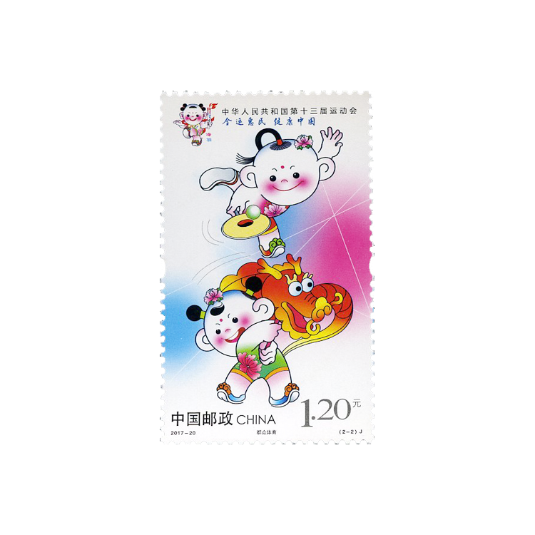 中国邮政定于2017年8月27日发行《中华人民共和国第十三届运动会》纪念邮票1套2枚,小全张1枚。