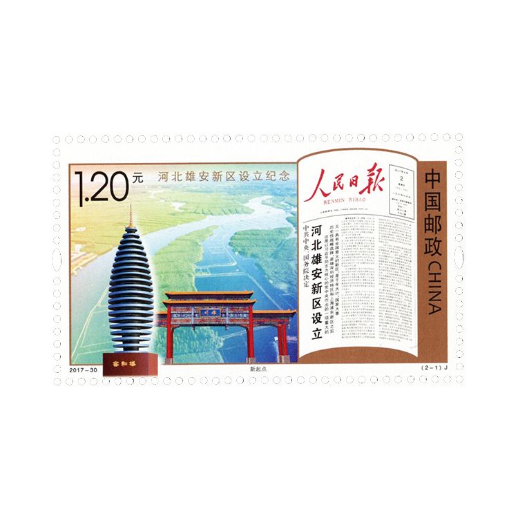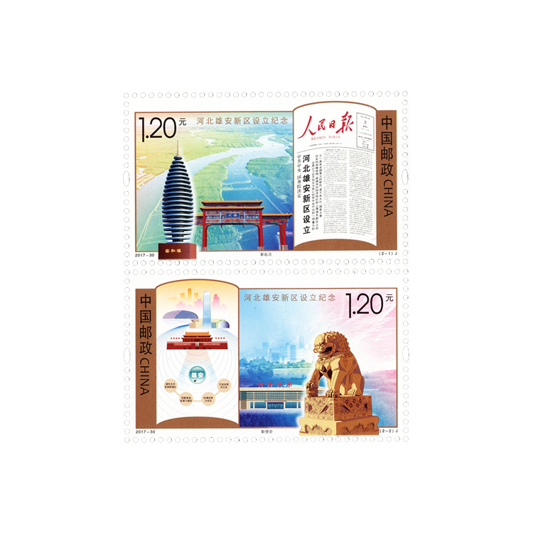中国邮政定于2017年12月22日发行《河北雄安新区设立纪念》纪念邮票1套2枚。