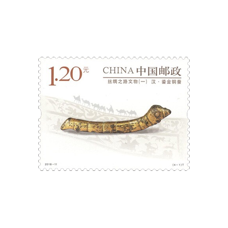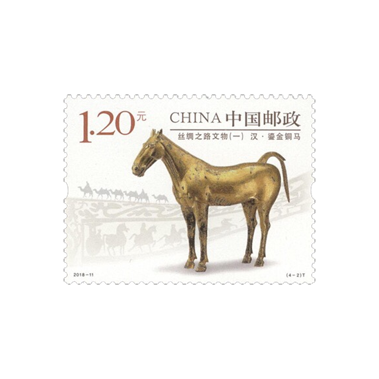 中国邮政曾于2012年发行《丝绸之路》特种邮票1套4枚,小型张1枚。为进一步弘扬“丝路精神”,筑梦“一带一路”,中国邮政特发行《丝绸之路文物(一)》特种邮票,邮票选取陆上丝路起点陕西省出土的四件代表性文物。