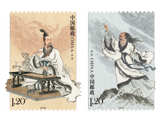 中国邮政定于2018年6月18日发行《屈原》特种邮票一套2枚,小型张1枚。