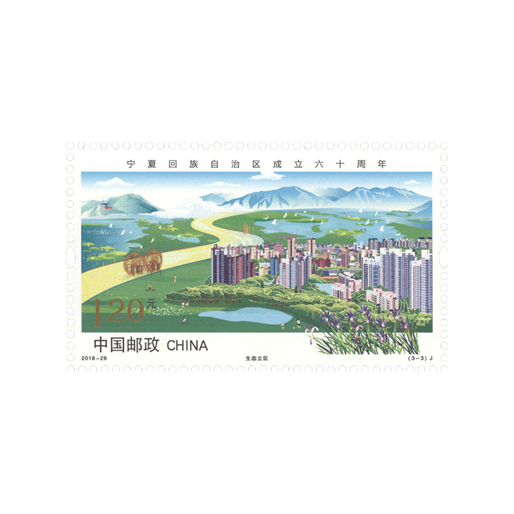 中国邮政2018年9月19日发行《宁夏回族自治区成立六十周年》纪念邮票,一套3枚。