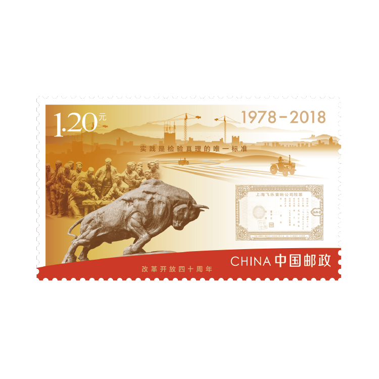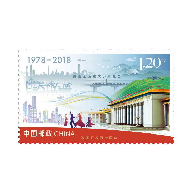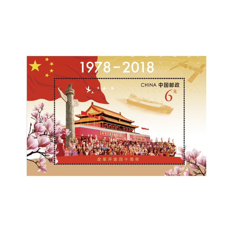 中国邮政定于2018年12月18日发行《改革开放四十周年》纪念邮票,一套2枚,小型张一枚。