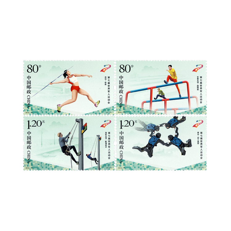 中国邮政定于2019年7月10日发行《第七届世界军人运动会》纪念邮票1套4枚,全套邮票面值为4元。