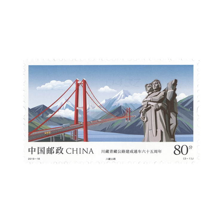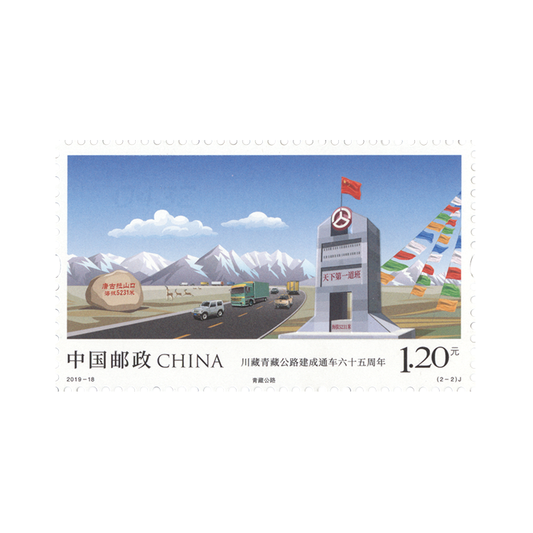 中国邮政定于2019年8月10日发行《川藏青藏公路建成通车六十五周年》纪念邮票1套2枚,全套邮票面值为2元。