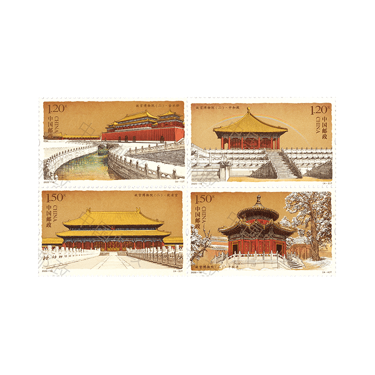 中国邮政定于2020年7月11日发行《故宫博物院(二)》特种邮票1套4枚,小型张1枚。